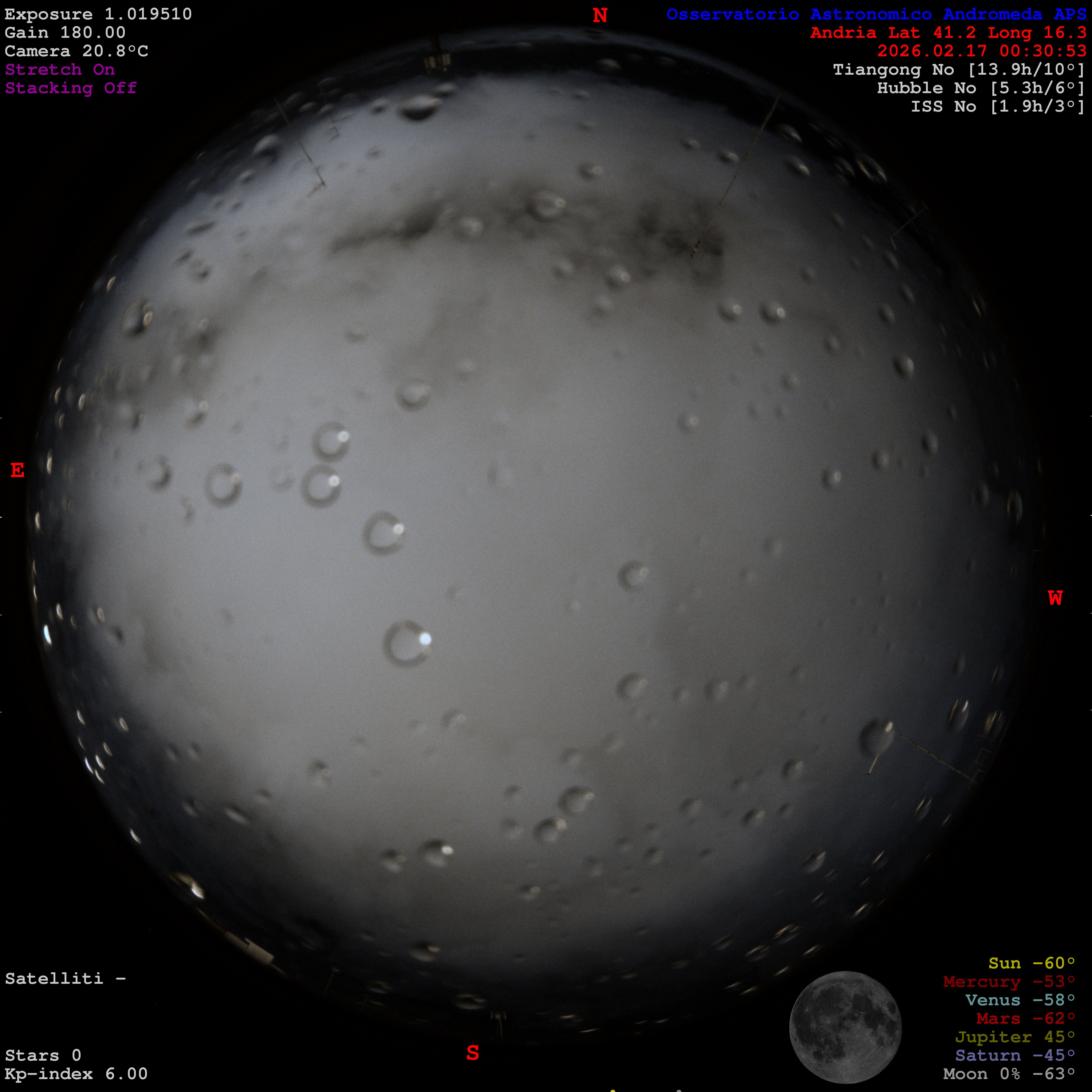 La AllSky Camera è una camera astronomica con obiettivo grandangolare che riprende l’intero cielo, 24 ore su 24. Permette di osservare in diretta stelle, meteore, nuvole e le condizioni atmosferiche.
